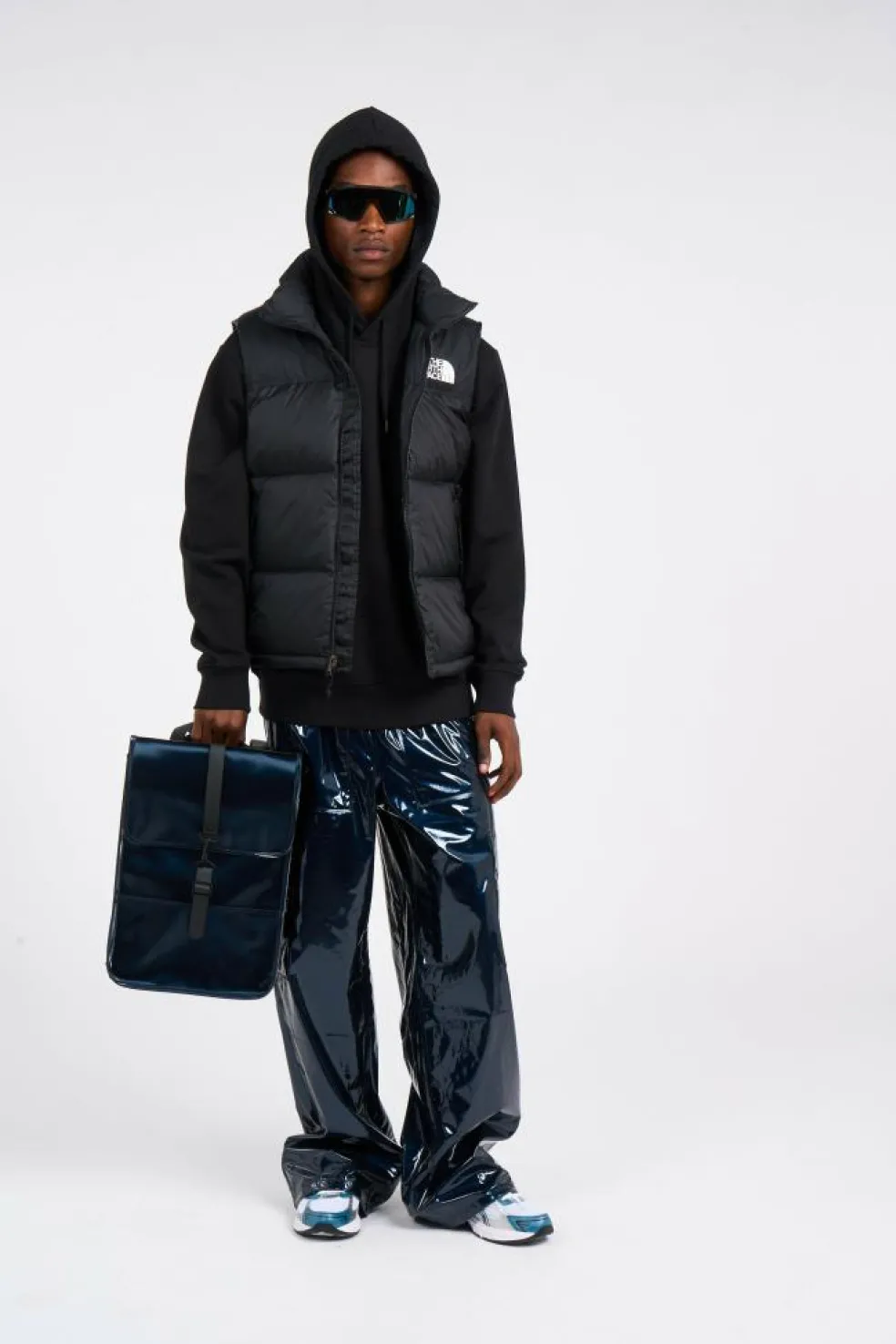 Baskets by ASICS , Pantalon cargo by RAINS , Doudoune by THE NORTH FACE