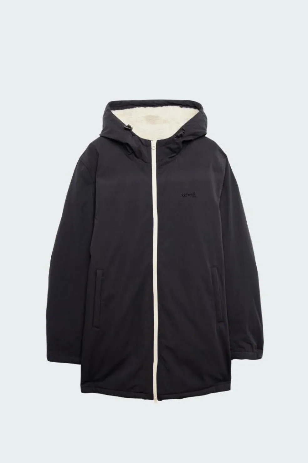 – Col à capuche avec cordon de serrage