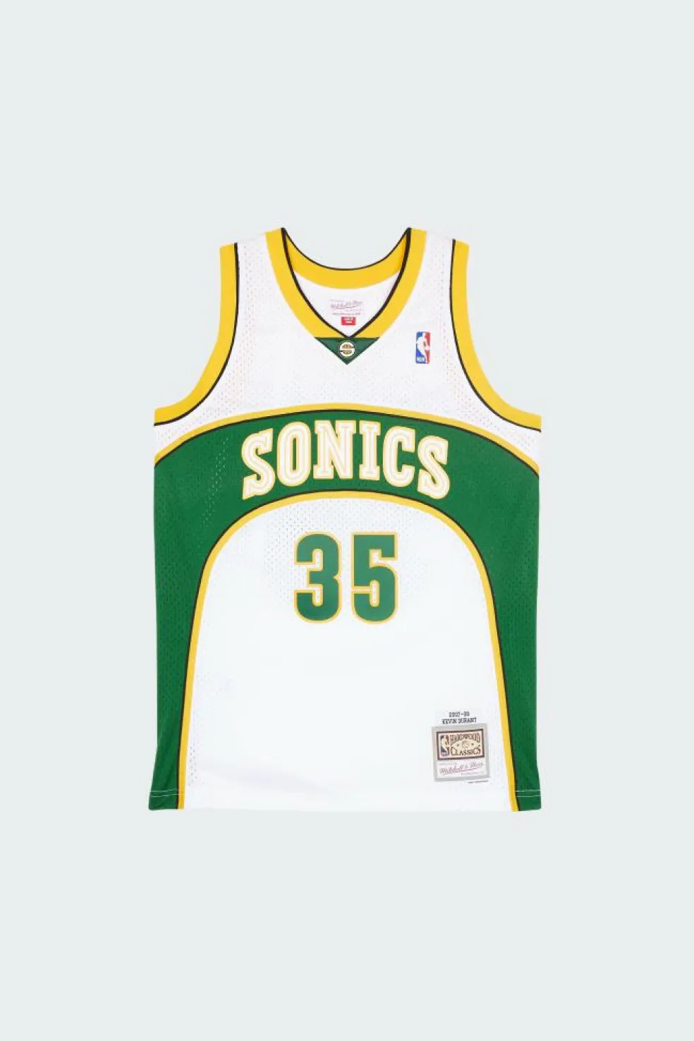 – label Mitchel & Ness avec le nom du joueur brodé sur la base