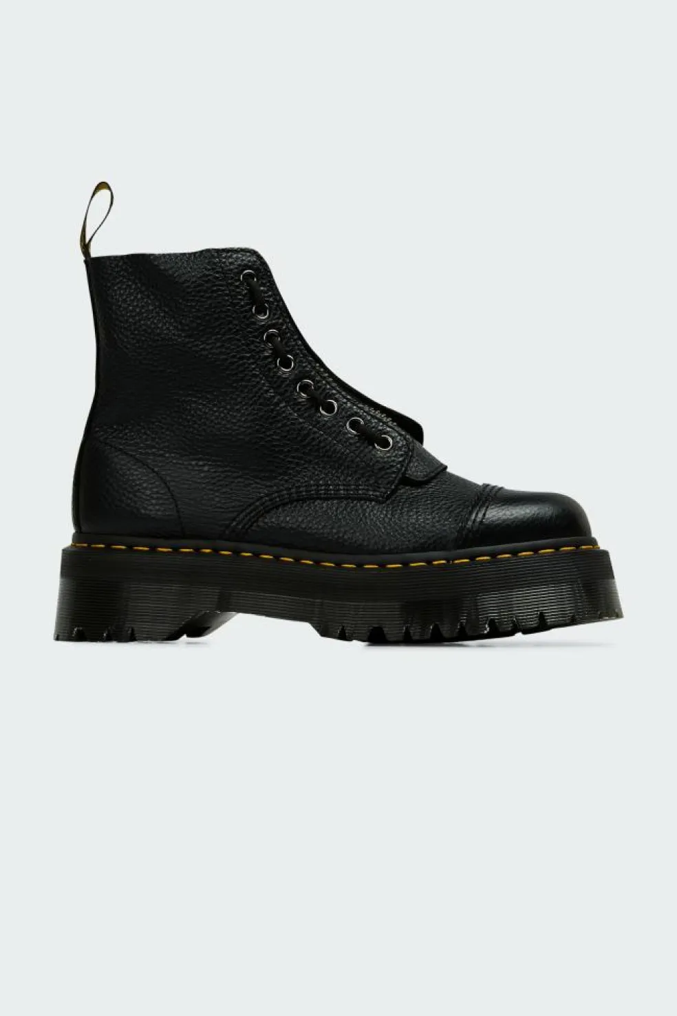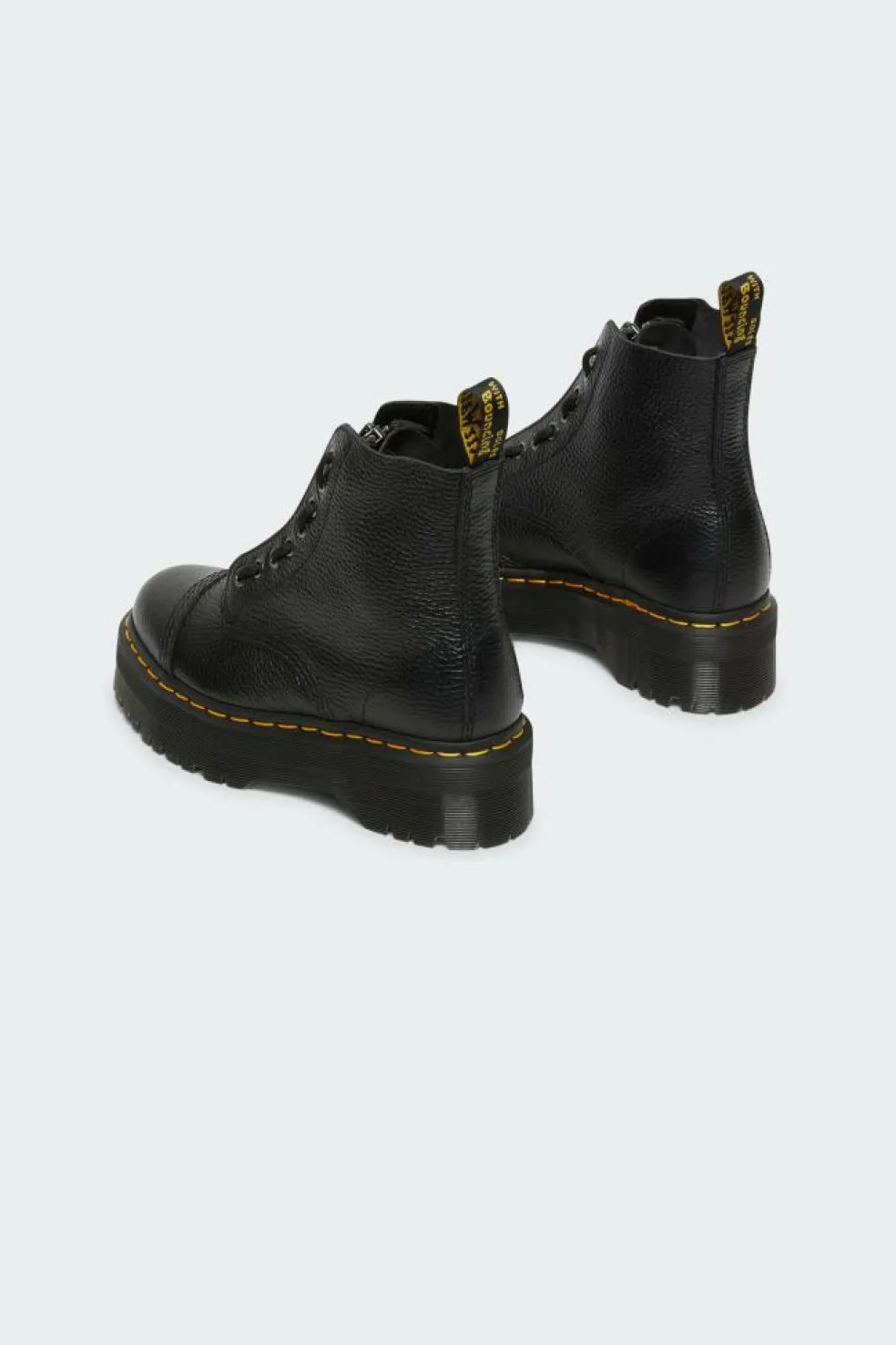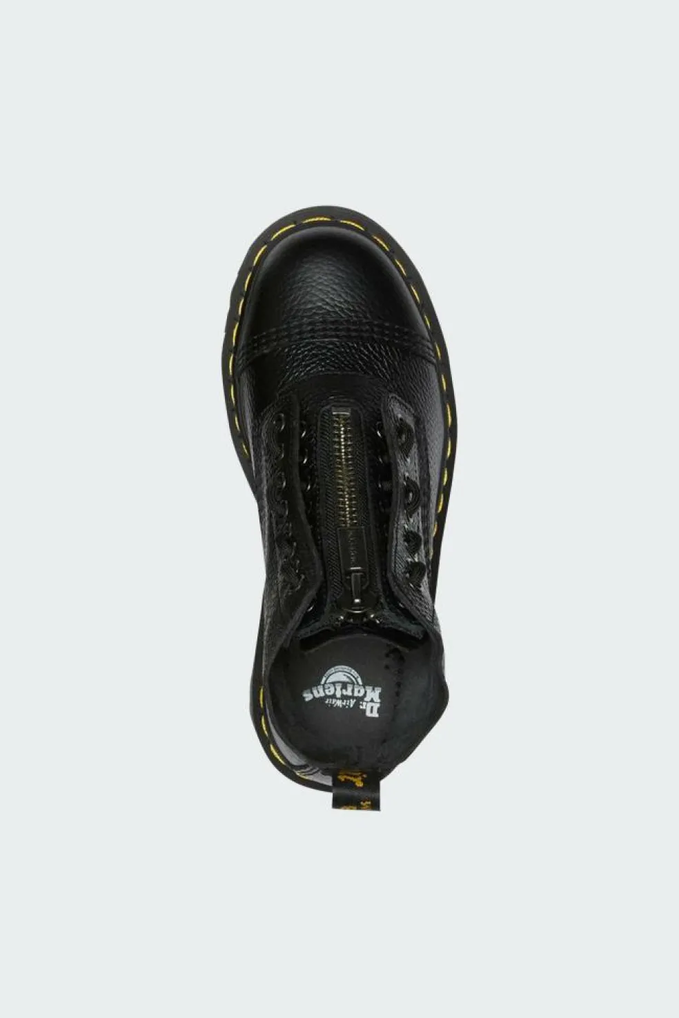 Les imposantes boots Sinclair sont un de nos modèles phares : nous les revisitons aujourd’hui en cuir blanc éclatant. On y retrouve un zip amovible sur le dessus de la tige, une surpiqûre jaune et de nombreux détails emblématiques de Dr. Martens. Ces boots au caractère bien trempé sont montées sur une imposante semelle plateforme Quad.