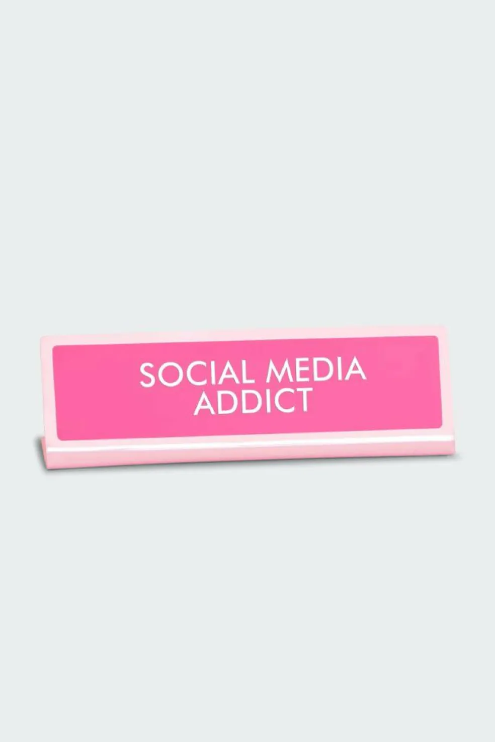 – Inscription « Social Media Addict » gravée sur fond et bordure rose