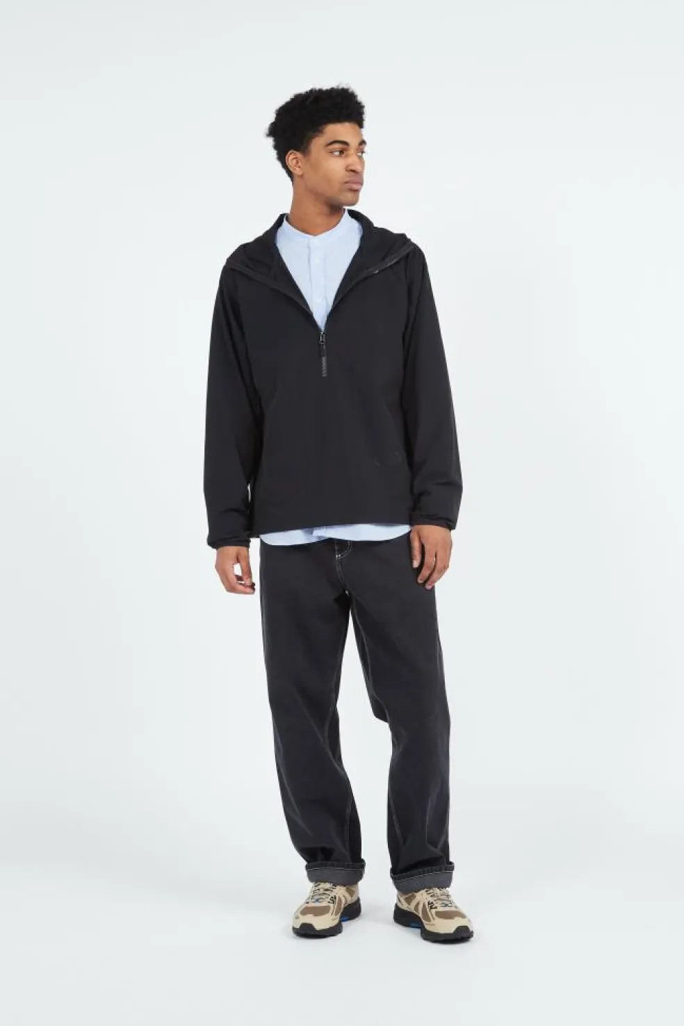 – Col à capuche avec cordon de serrage