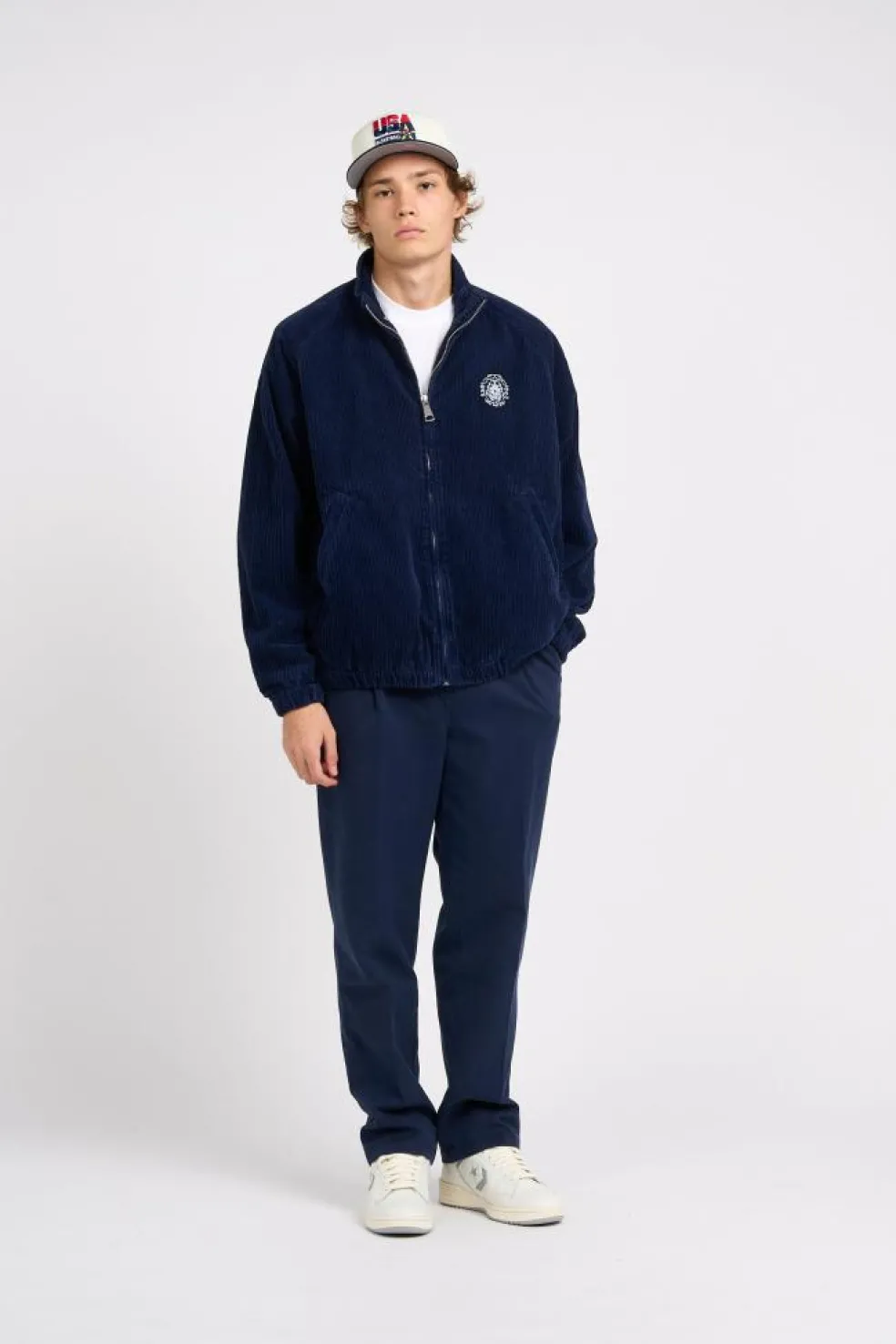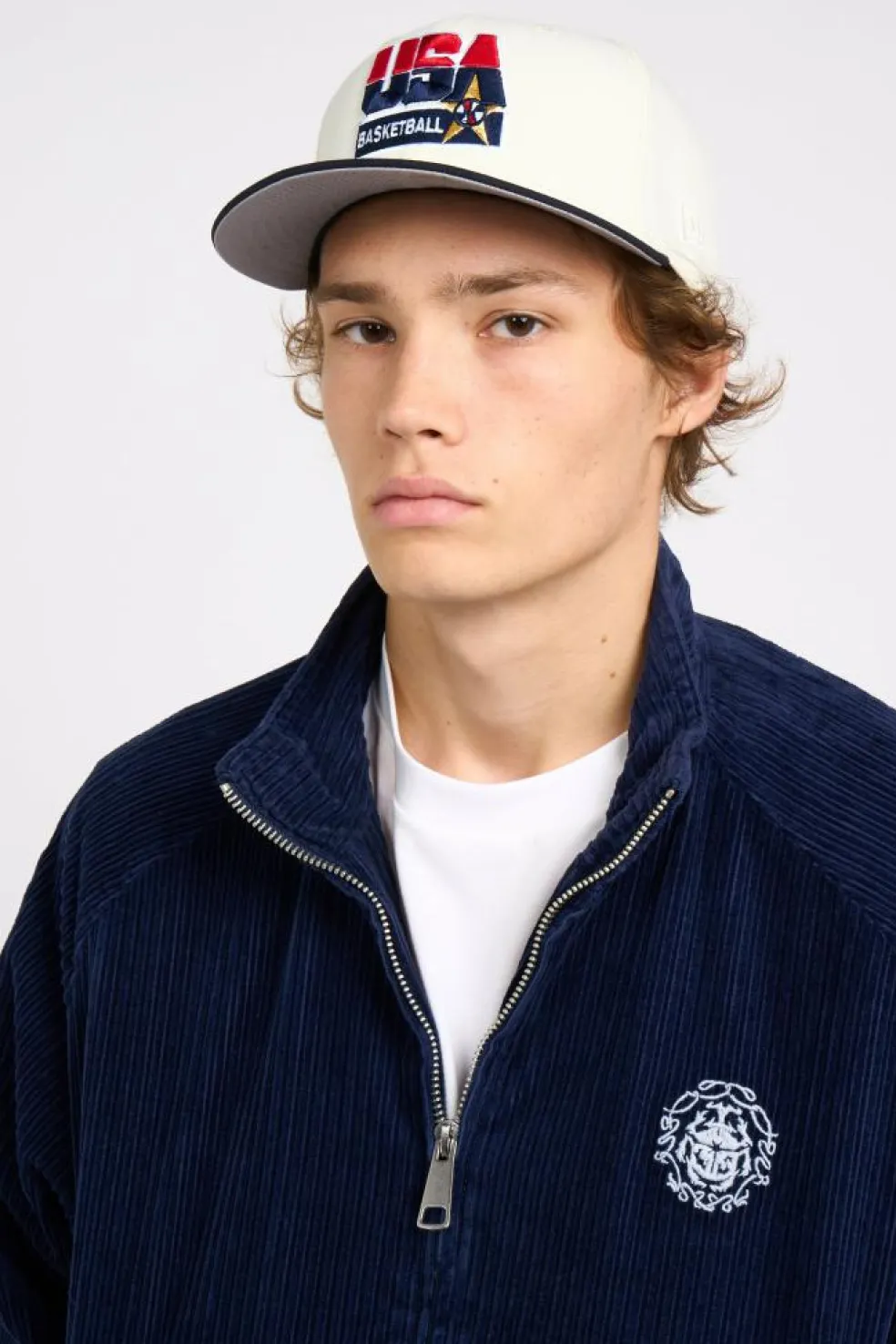 Le mannequin mesure 1m85 et porte cet article en taille 7 3/8