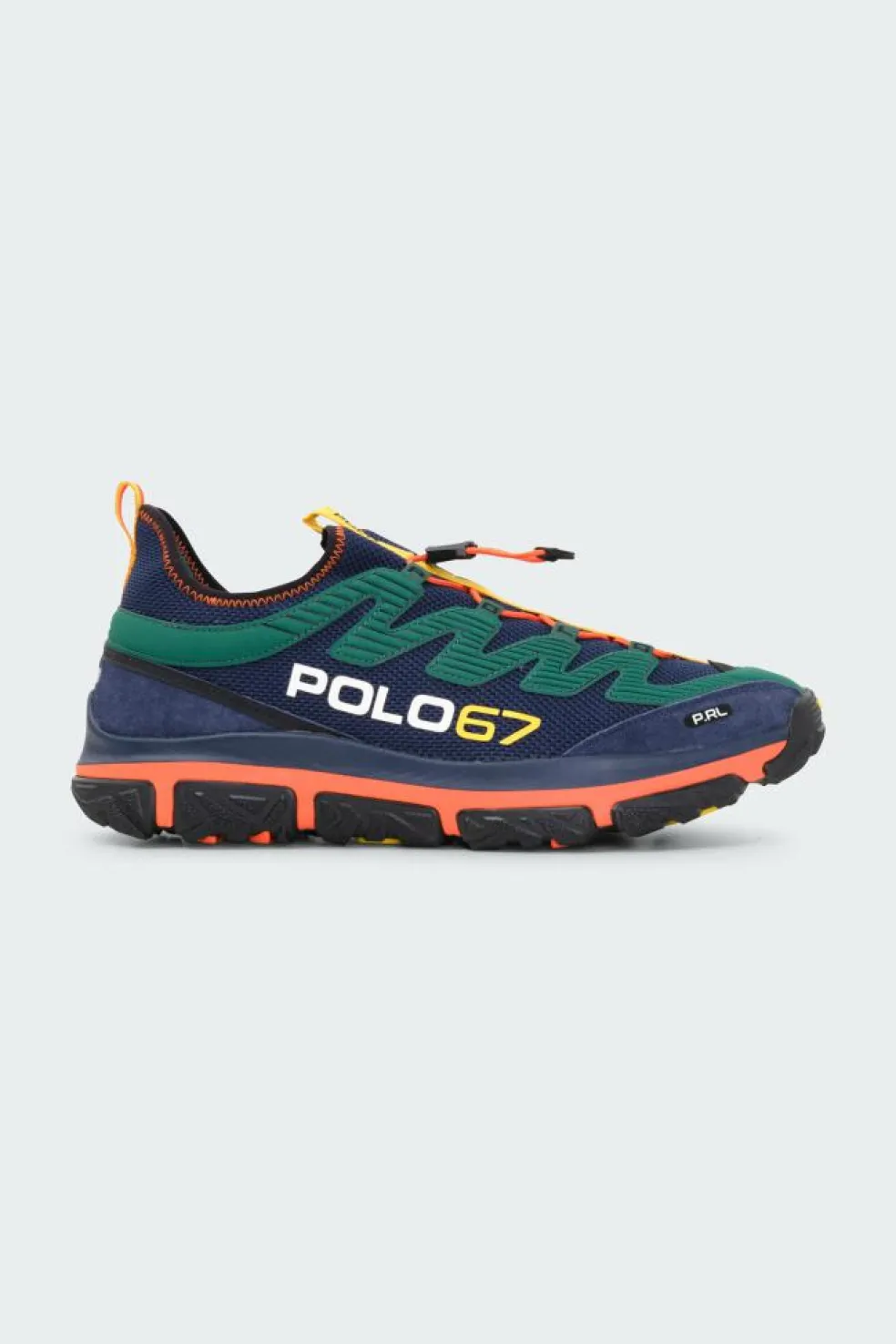 - Inscription «Polo67» imprimée sur le côté extérieur. Monogramme«P.RL» imprimé sur le bout. Étiquette «Ralph Lauren» tissée sur la claque. Monogramme «RL» sur la fermeture à lacets. Inscription «Polo» sur le talon et le bout.