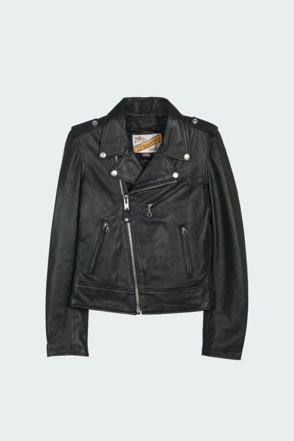 Blouson zippé en cuir by SCHOTT pour Femme.
