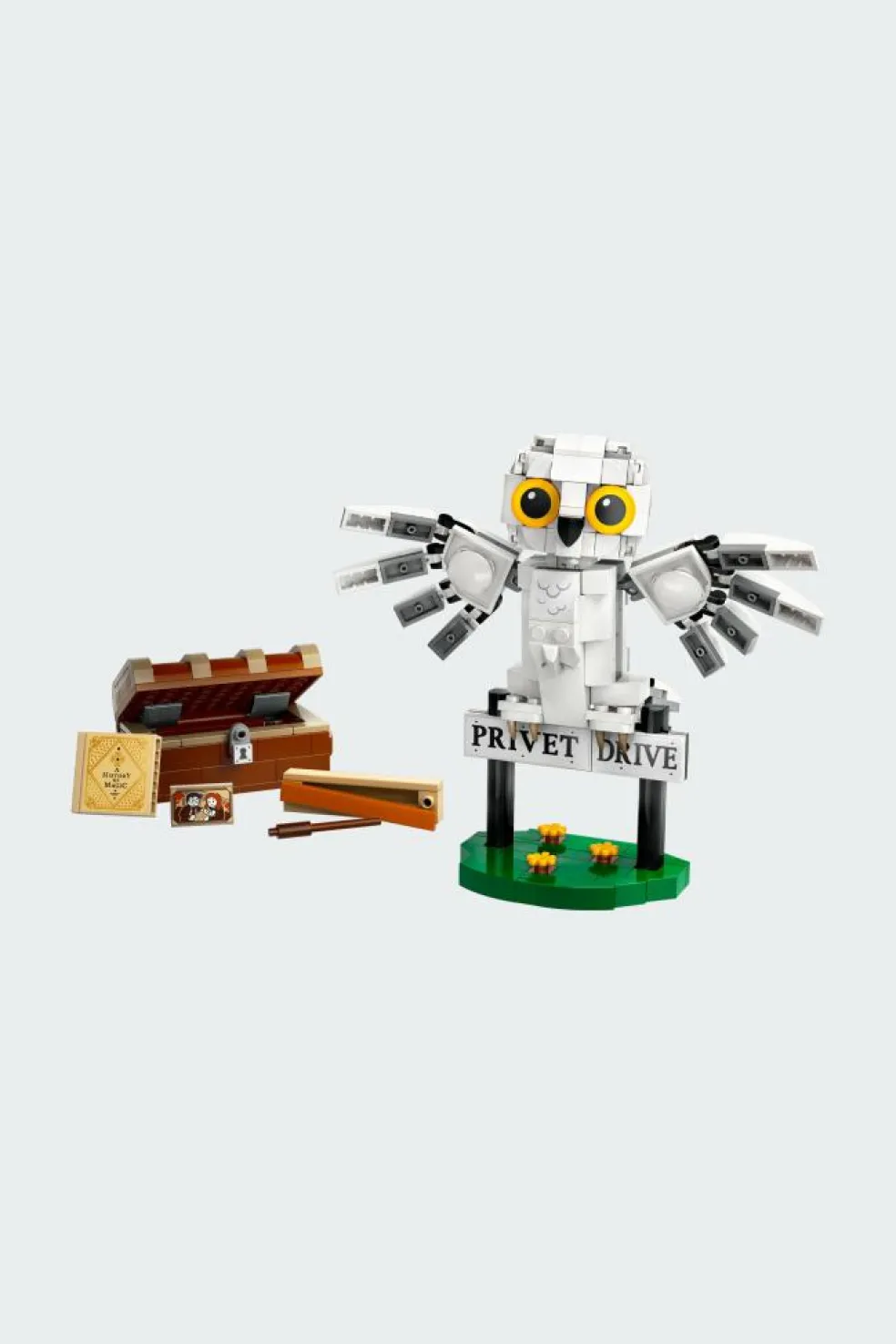 – La figurine de Hedwige possède une tête, des ailes et unequeue articulées et peut se percher sur le panneau «Privet Drive».