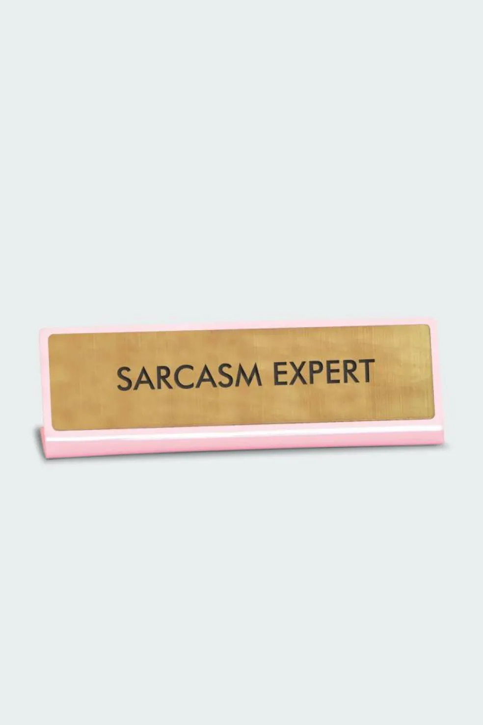 – Inscription « Sarcasm Expert » gravée sur fond doré et bordure rose
